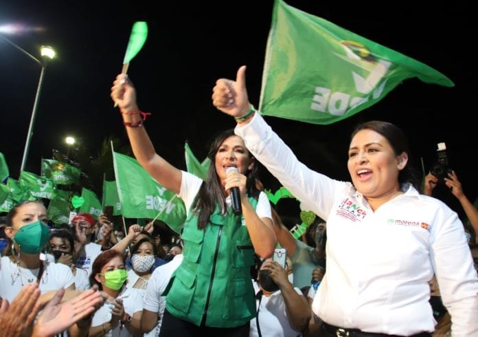La candidata del Partido Verde, Morena, Partido del Trabajo y Movimiento Auténtico Social estuvo acompañada por Laura Fernández Piña, candidata a diputada federal por el Distrito 4, a quien agradeció su apoyo y compañía; Maura Cordero, madre de quien fue su esposo, y sus hijas Joyce Regina y Gema Isabela, ante quienes ofreció desarrollar una campaña con trabajo incansable para lograr el desarrollo e inversión que se requieren, siempre en un entorno de paz, como sus habitantes desean.