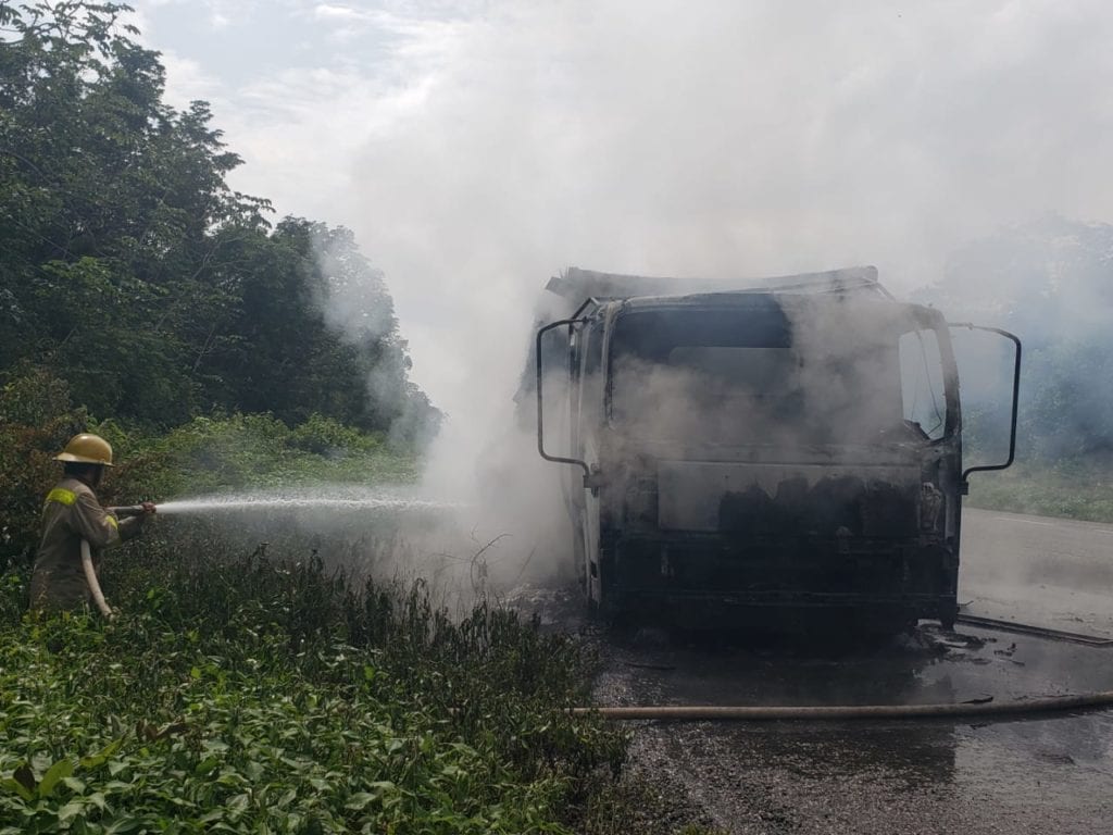 Felipe Carrillo Puerto.- Un camión cargado de helados fue incendiado esta tarde, después que, de acuerdo al testimonio de los trabajadores, un grupo de asaltantes les arrebatara cerca de100 mil pesos que trasladaban, en la carretera federal 307, entre Chemuyil y este municipio.