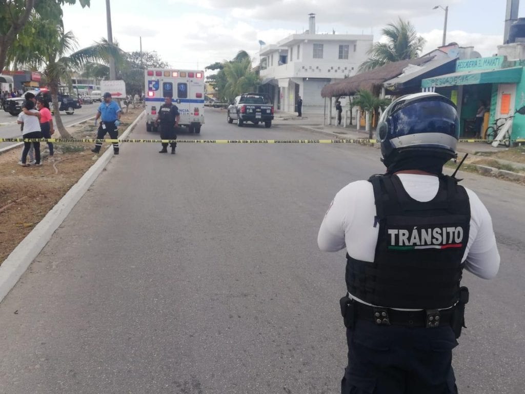 Playa del Carmen.- Una persona fue ultimada a balazos en las afuera de una pollería, se presume que es el dueño del establecimiento que presuntamente ya había sido amenazado por negarse al pago de derecho de piso.