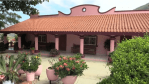 La residencia destaca no sólo por encontrarse en la parte intermedia de un cerro, sino también por sus colores rosa y marrón, y esta se encuentra en el municipio de Badiraguato, Sinaloa, y pertenece al narcotraficante Joaquín “El Chapo” Guzmán Loera.