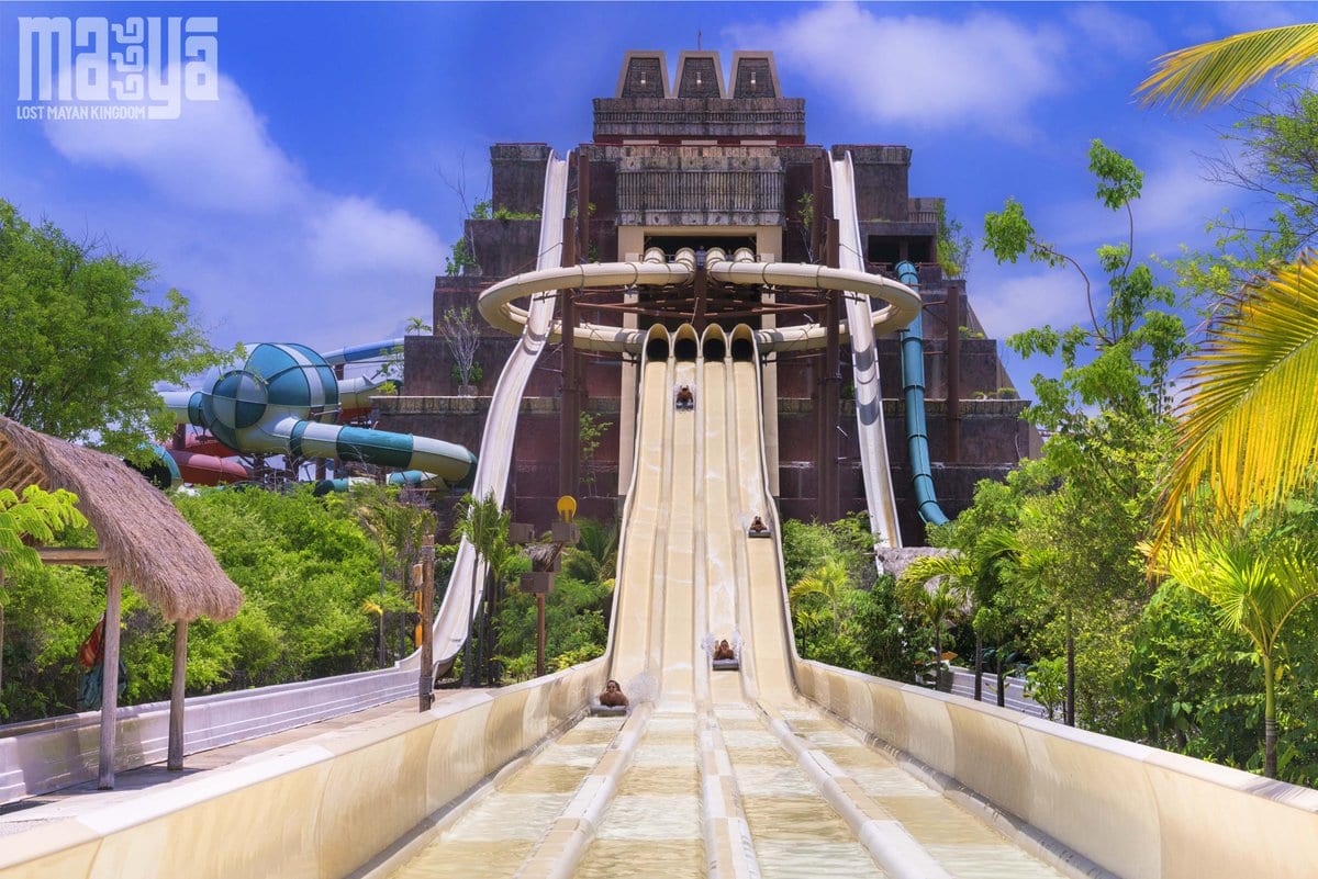 Lost Mayan Kingdom, cuenta con varios toboganes en los cuales podrás pasar minutos de adrenalina pura. Pero si lo que buscas es relajación, puedes dejarte llevar por la corriente de un mágico río lento o pasar un tranquilo y refrescante rato en las piscinas con las que cuenta el parque acuático.