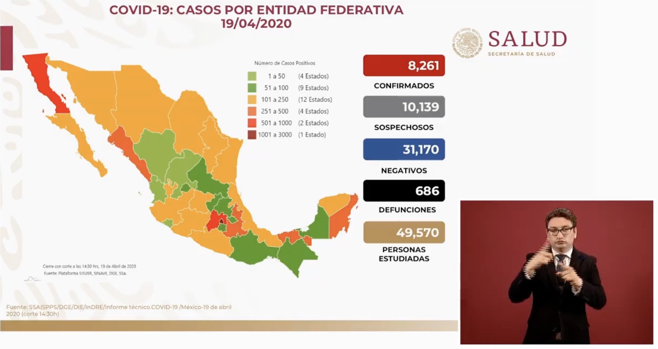 Autoridades sanitarias del gobierno federal encabezadas por el subsecretario Hugo López Gatell informaron que el panorama nacional de casos confirmados por coronavirus ya suman 8 mil 686 casos y 686 defunciones.