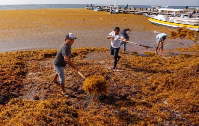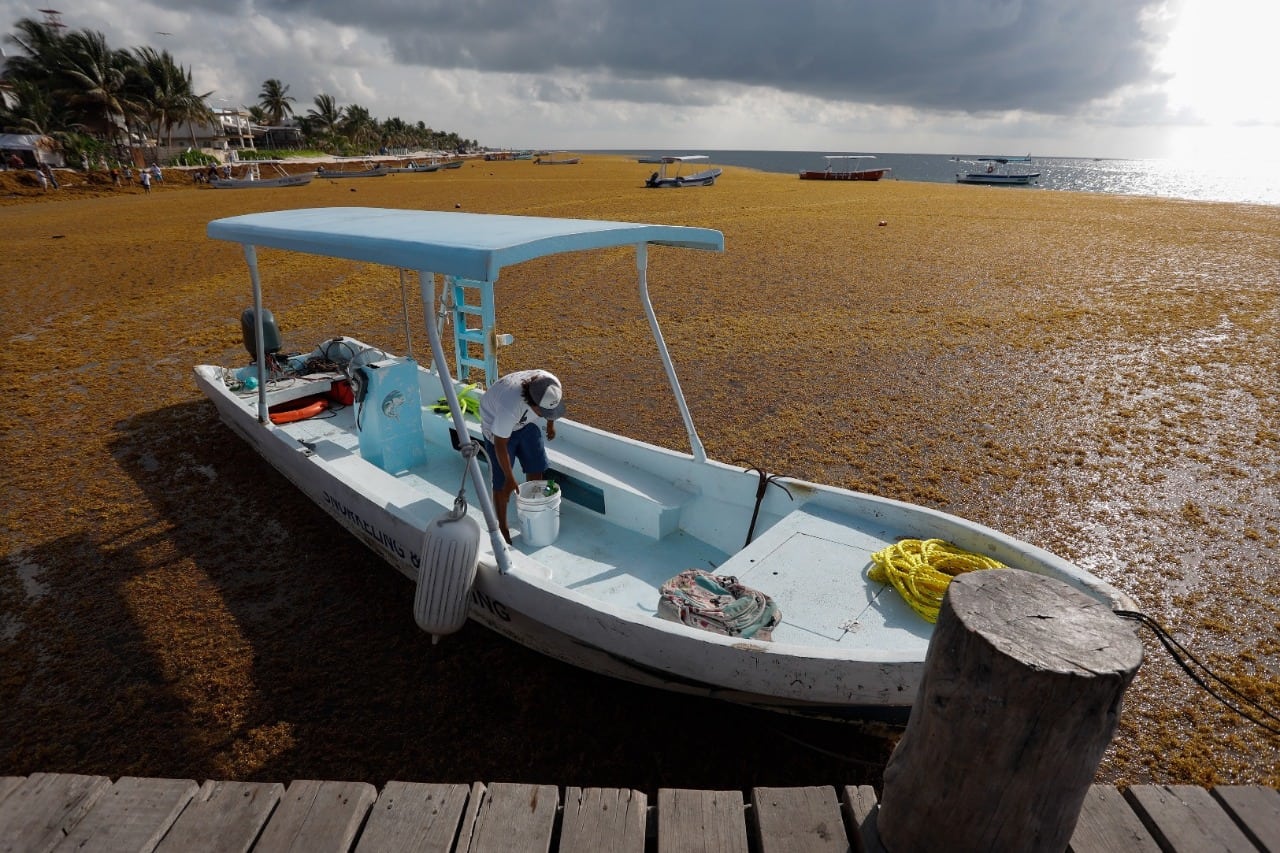 “Tenemos manchones de sargazo de la orilla de la playa hacia tierra adentro de cinco o seis metros, pero de la playa hacia el mar hay manchones hasta de 40 metros. Solo la noche de este lunes se dio un tremendo arribo masivo, que inundó de esta planta marina toda la zona costera del destino”, explicó el funcionario.
