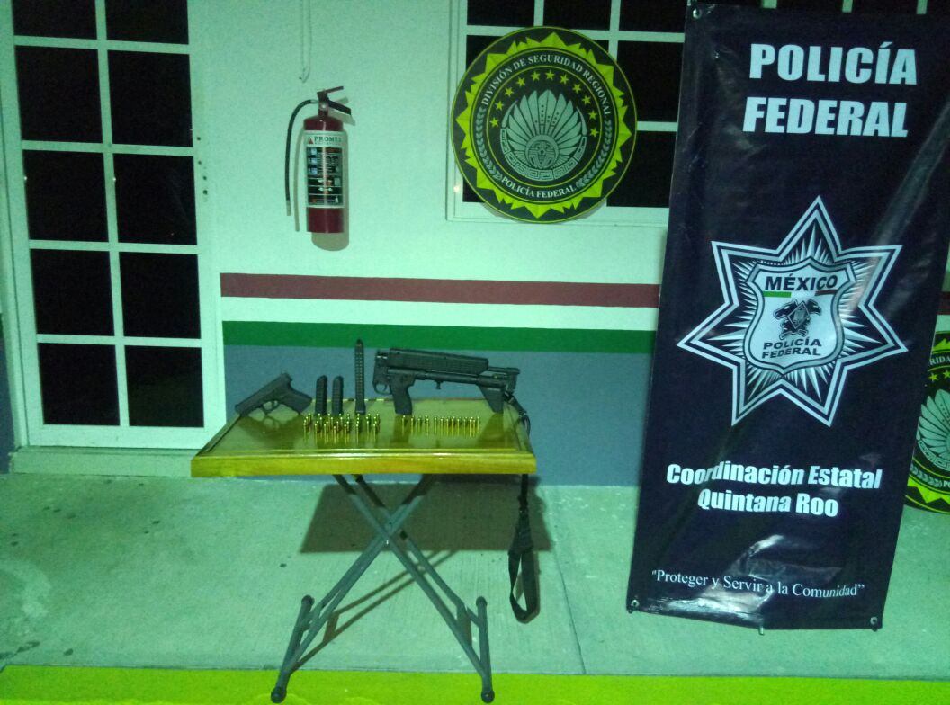 Chetumal.- Un grupo de personas que viajaban en un automóvil en la carretera Chetumal-Escárcega fue detenido esta madrugada, al descubrirle la Policía Federal dos armas de fuego.