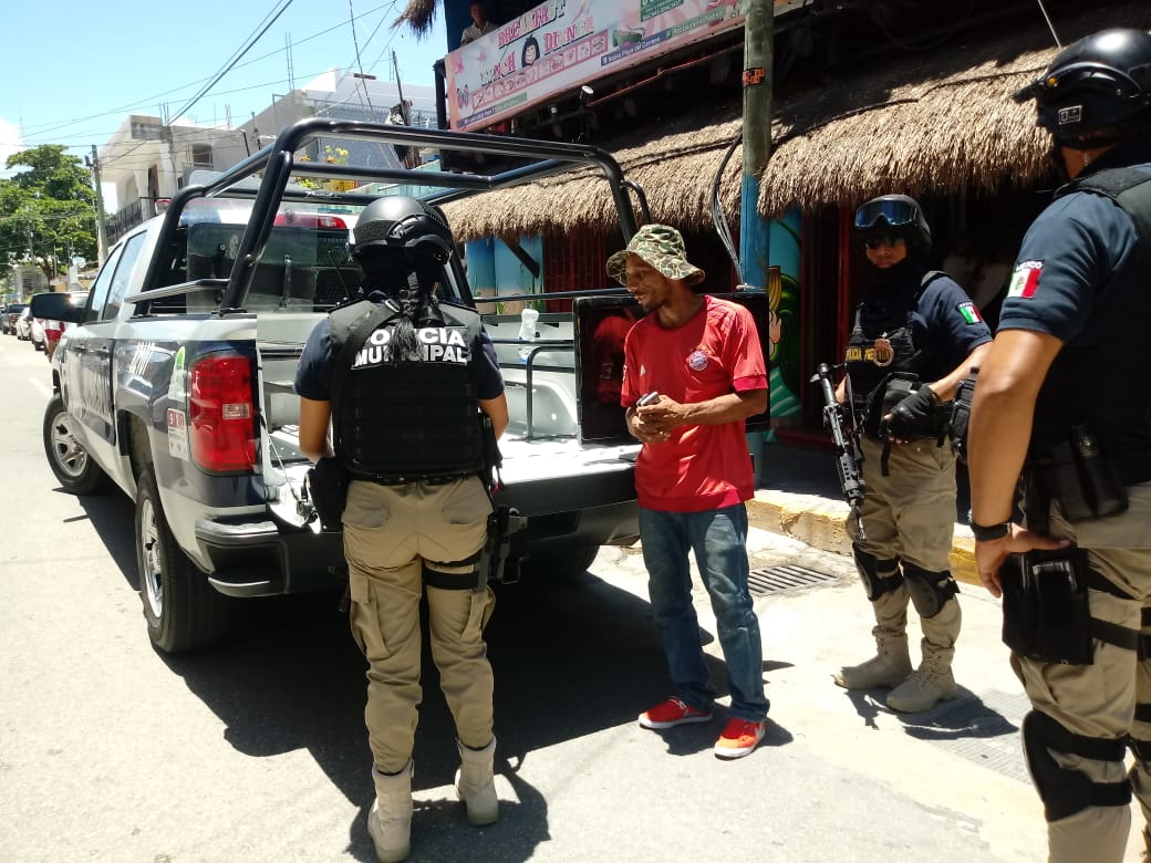 Playa del Carmen.-Nuevamente las autoridades atrapan al “tripas” esta vez se le captó caminando con mercancía robada sobre la avenida 30 con calle 20 en la colonia Gonzalo Guerrero.