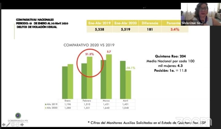 En cuando a delitos, de enero a abril, se cuentan cinco feminicidios, cuando en todo 2019 fueron solo tres.