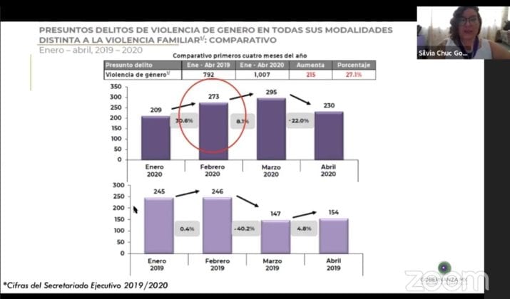 Silvia Chuc Aburto, representante de este colectivo, que hace 10 años documenta la violencia que viven las mujeres, comentó que el desempleo y confinamiento ha traído consigo una dramática alza en denuncias y delitos en este rubro.