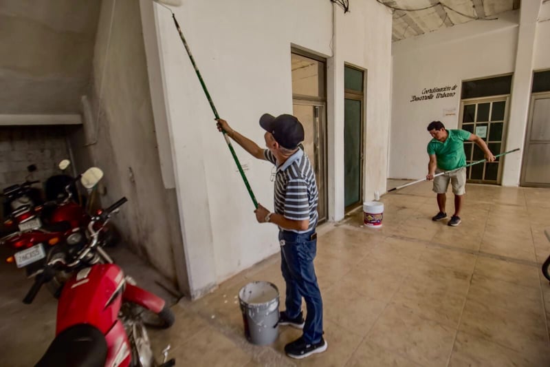En ese sentido, aunque hoy fue un día inhábil para los trabajadores del H. Ayuntamiento de Bacalar por conmemorarse el “Día de la Raza”, Chepe Contreras desde muy temprano se dedicó a limpiar y pintar las instalaciones del Palacio Municipal, en compañía del personal, directores y coordinadores adjuntos.