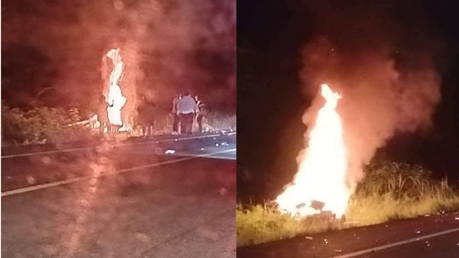 Un trágico accidente se registró la noche de este sábado 30 de agosto sobre la carretera federal 307 a la altura del tramo Bacalar-Felipe Carrillo Puerto, donde dos autos colisionaron a gran velocidad, dejando a uno de los vehículos incendiado.