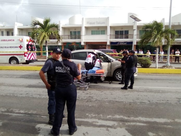 Tulum.- Una persona fue herida de bala frente al Palacio Municipal por dos sujetos que huyeron en moto, pero fueron interceptados.