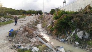Al llegar al lugar, descubrieron un riachuelo que sale de los dos predios y que sigue por una brecha de cerca de 100 metros, al parecer creada por las empresas, por donde escurre el agua con cemento que llega directo al subsuelo.
