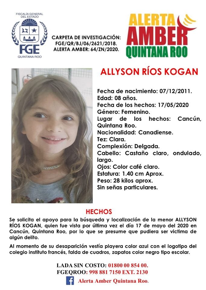 Mediante una Alerta Amber la Fiscalía General del Estado solicitó el apoyo de la ciudadanía para buscar a dos menores de nacionalidad canadiense y que fueron vistas en Cancún por última vez el pasado mes de mayo.