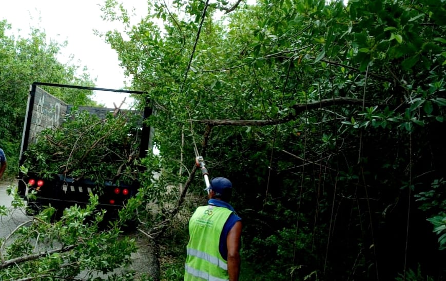 “Hoy por la mañana iniciamos con el derribo de un árbol en la colonia 23 de Enero, labor que llevó a elementos de bomberos y personal de Servicios Públicos más de cuatro horas. Asimismo, la CFE nos reporta que siguen atendiendo afectaciones en Bahía Petempich y la Ruta de los Cenotes”, mencionó.