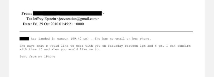 Son 332 las veces que se menciona Cancún en los archivos de Jeffrey Epstein. En uno de estos correos, del 2010, se le informa directamente al magnate que una joven había aterrizado en el destino, que no tenía e-mail en su celular y que se iba a reunir con él unos días después.