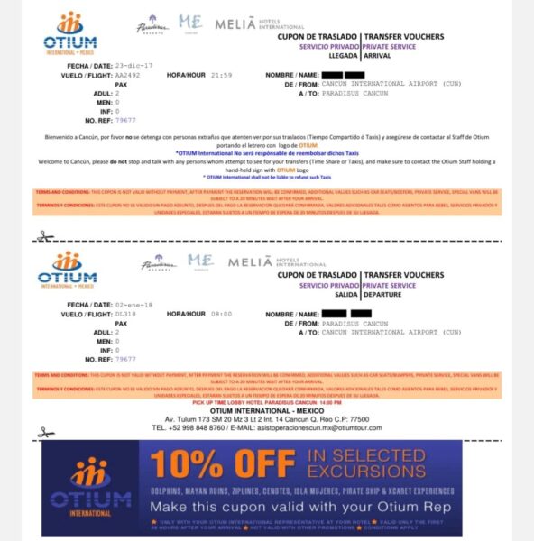 Un recibo da cuenta de los traslados de la gente de Jeffrey Epstein del aeropuerto de Cancún a algunos de los hoteles del destino. Por ejemplo, en diciembre de 2017 fueron de la terminal al hotel Paradisus.