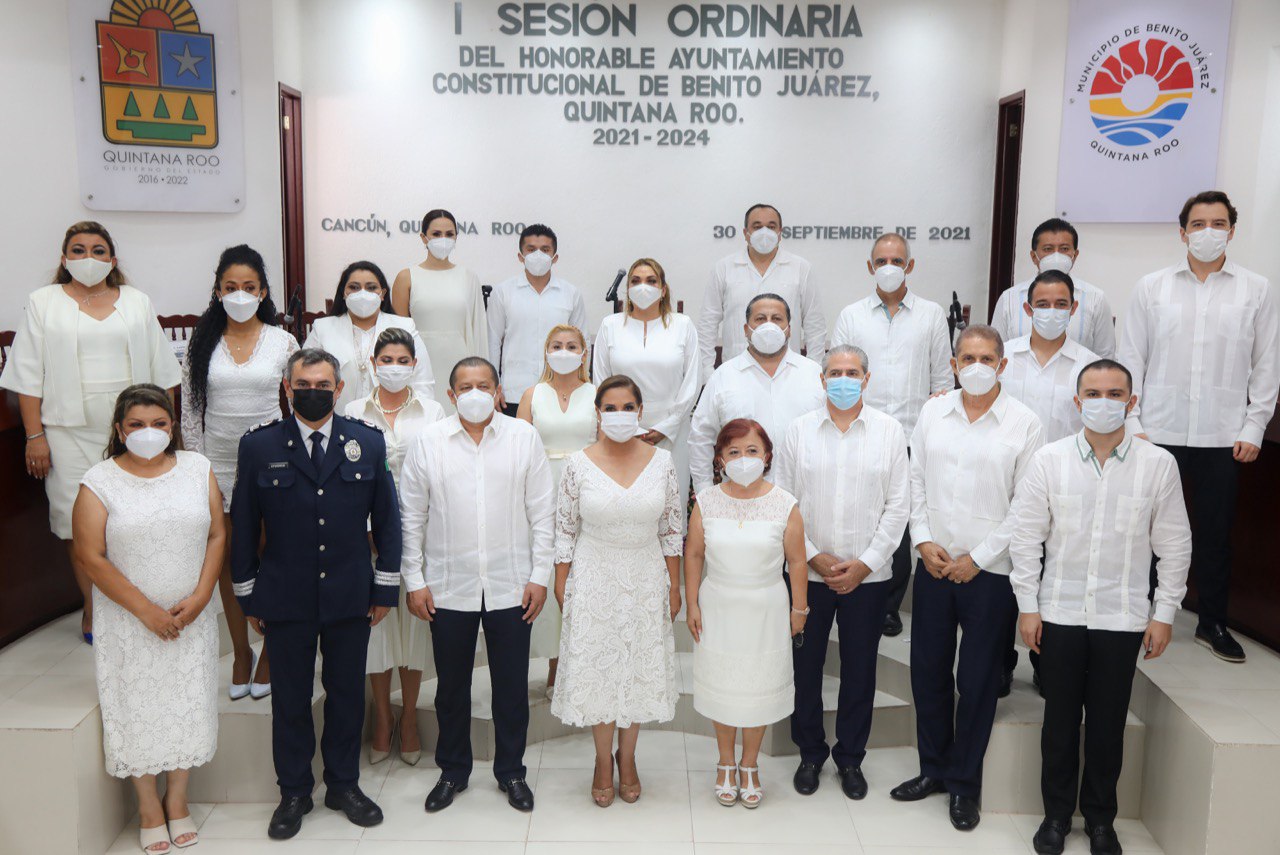 Cancún, QR a 30 de septiembre de 2021.- Al realizar la Primera Sesión Ordinaria de la administración 2021-2024, se avalaron los primeros nombramientos propuestos por la Presidenta Municipal Mara Lezama para el correcto funcionamiento de la gestión, además de que se integraron las diferentes comisiones de dicho cuerpo cabildar.