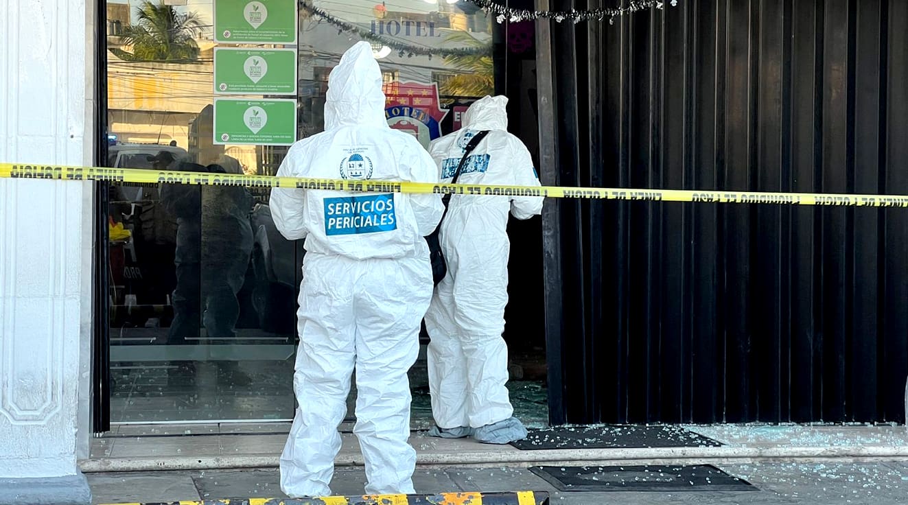 Los peritos de la Fiscalía General del Estado (FGE) se encargaron de levantar el cuerpo y los casquillos percutidos, al parecer de calibre .9 milímetros, Los agentes solicitaron los videos de las cámaras de seguridad del hotel, y se dijo que se analizarán los del C5.