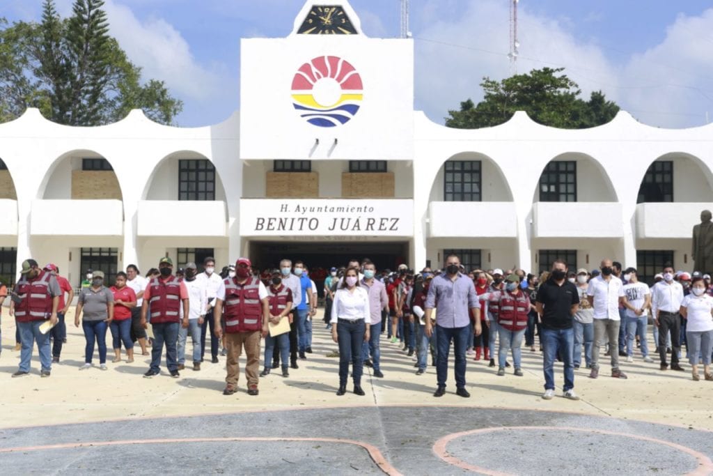 “Aquí está el personal de las diferentes dependencias del Ayuntamiento de Benito Juárez, hombres y mujeres. Nuestros compañeros dejarán sus oficinas para sumarse a las brigadas de ayuda, para incorporarse al campo, a la fajina, porque hoy vamos Todos por Cancún”, dijo.