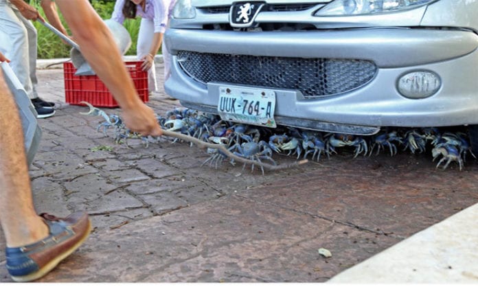 Caber recordar que oficialmente la temporada del cangrejo azul es durante agosto y septiembre, cuando se les puede ver cruzar algunas avenidas de la ciudad; sin embargo al verse afectados tras inundarse sus madrigueras han invadido las calles y avenidas como la Bonanpak a la altura de Tecmilenio en busca de un lugar para resguardarse.