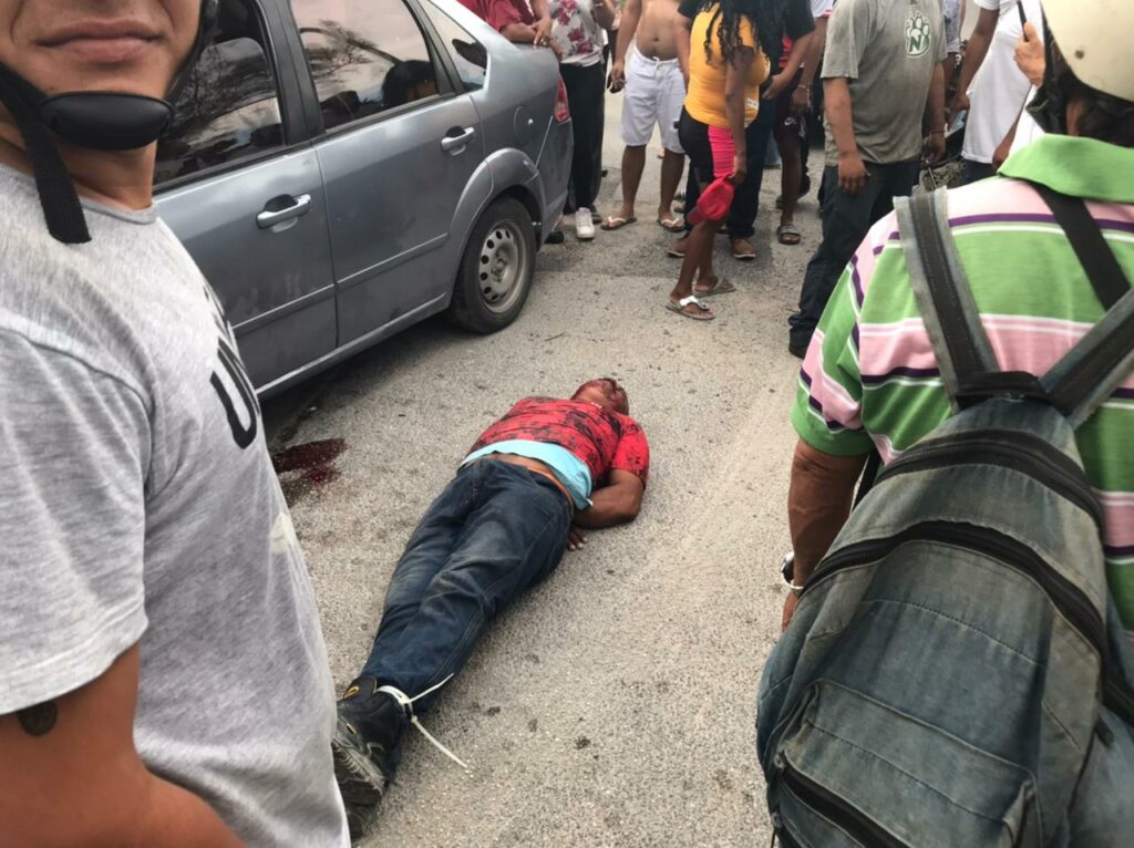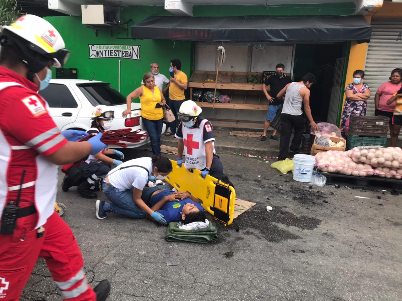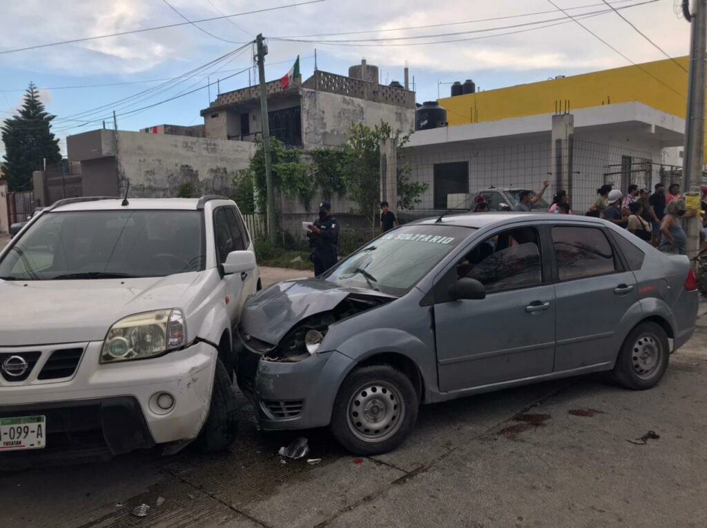 Cancún.- El conductor de un auto marca Ford, tipo Fiesta, atropelló este sábado a dos personas que estaban afuera de una frutería de la avenida Niños Héroes, a la altura de la Región 228.