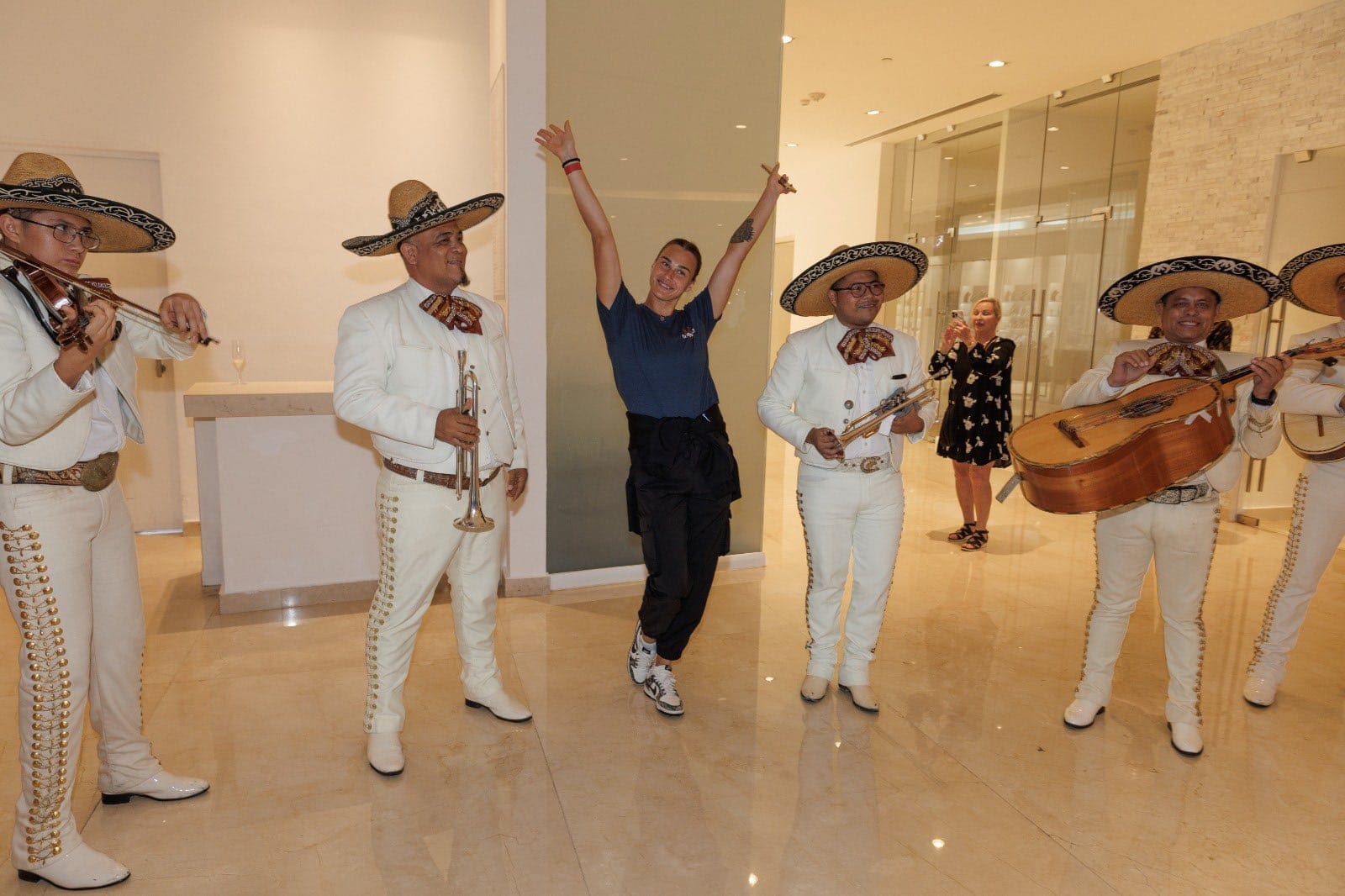 Aryna Sabalenka fue recibida en el Aeropuerto Internacional de Cancún (AIC) por los organizadores del evento, así como por Bernardo Cueto Riestra, secretario de Turismo de Quintana Roo.