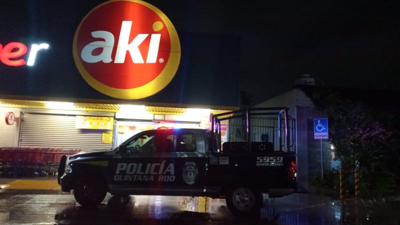 Cancún.- Esta noche se registró un asalto con violencia a la sucursal de Súper Aki que se localiza sobre la avenida 135 con Las Torres, en la Supermanzana 515.