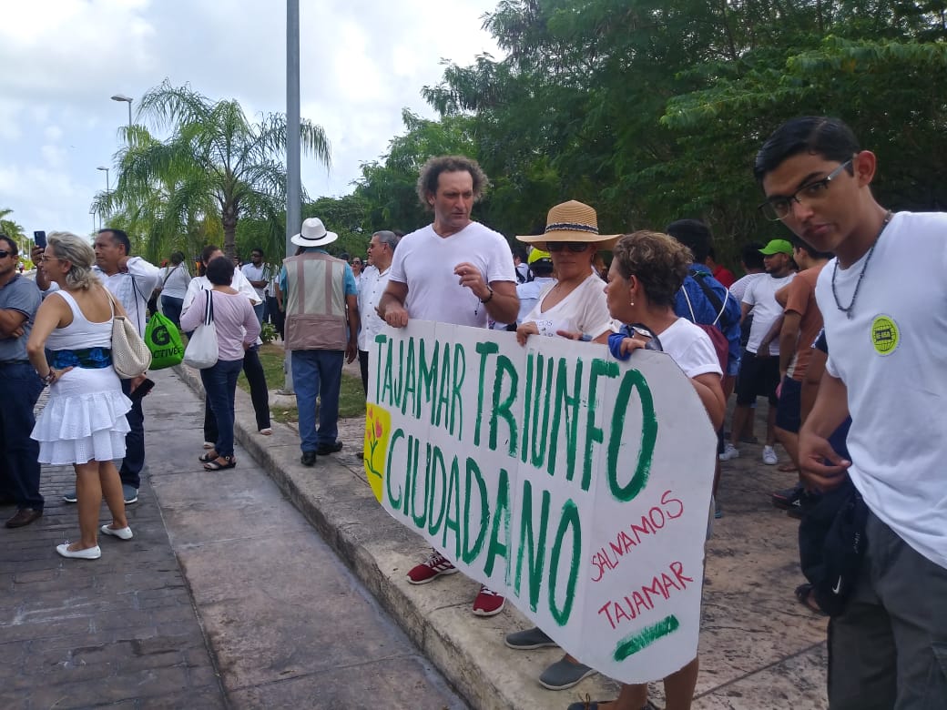Cancún.- Una multitud de más de 200 personas, la gran mayoría vestida de blanco, atestiguaron la reapertura a la circulación vehicular de Tajamar, ordenada por un tribunal y efectuada hoy por el Ayuntamiento de Benito Juárez.