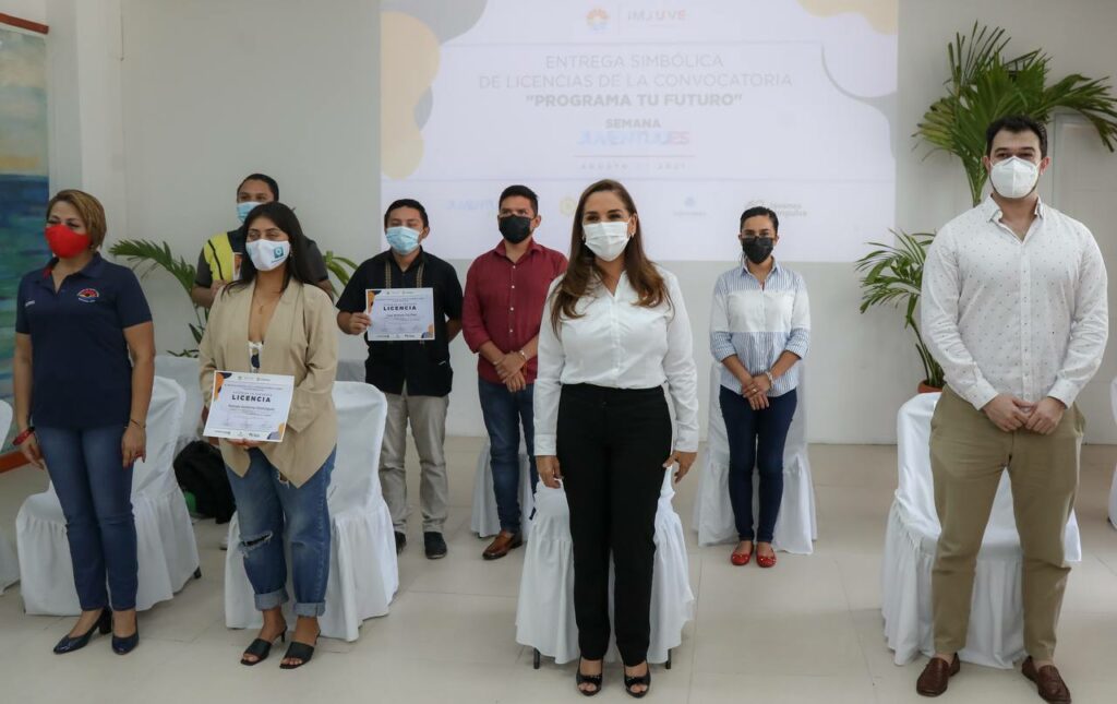 Cancún, Q.R., 13 de agosto de 2021.- En el marco del Día Internacional de la Juventud y las actividades de la “Semana JuventudEs”, autoridades del Ayuntamiento de Benito Juárez entregaron licencias de la convocatoria del “Programa tu futuro”, que permitirá a 500 jóvenes entre 15 a 29 años capacitarse y desarrollar sus habilidades de programación.
