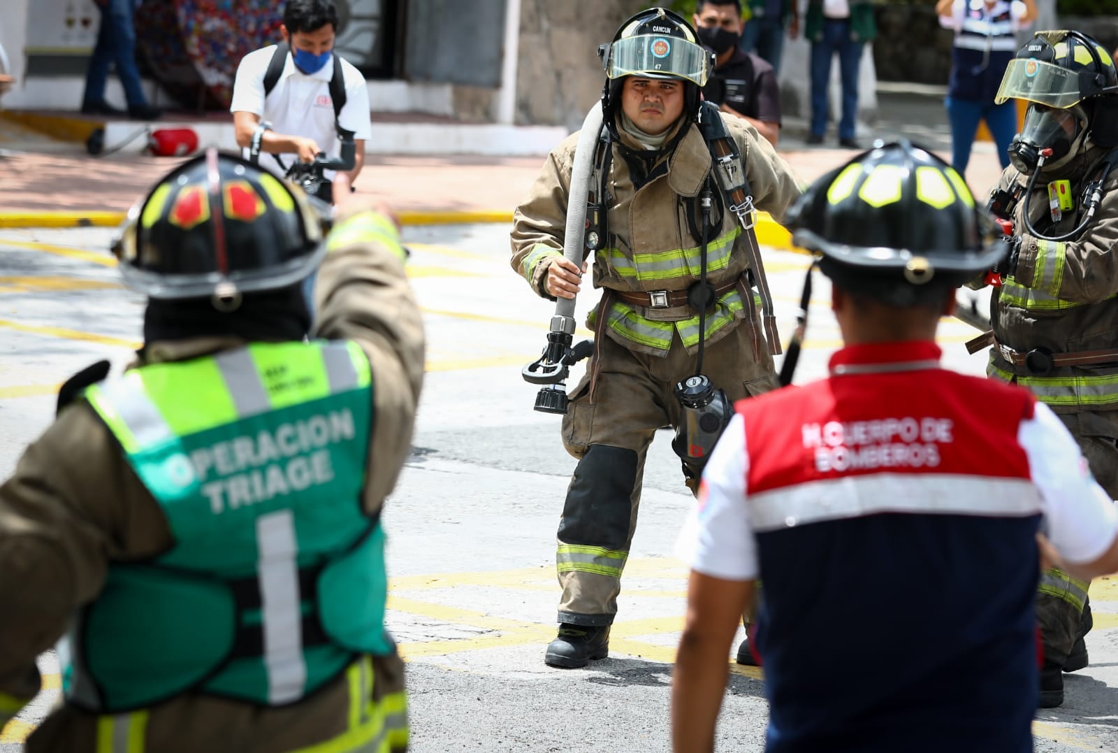 El director de Protección Civil, Antonio Riveroll Ribbón, explicó que la hipótesis generada para el simulacro fue un conato de incendio en Servicios Generales y Gestión Social, por lo que se procedió a activar la alarma para alertar al personal que labora ahí y reunir a los jefes de cada brigada, quienes tras confirmar el fuego en el sitio, iniciaron el procedimiento para la activación del plan de emergencia.