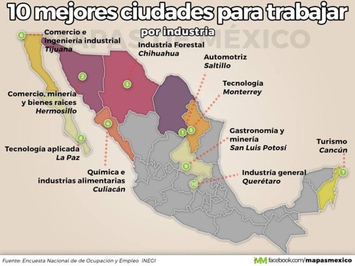 A través de Mapas México y con información proporcionada por el Instituto Nacional de Estadística y Geografía (Inegi), se dio a conocer las diez mejores ciudades para trabajar, de las cuales destaca Cancún.
