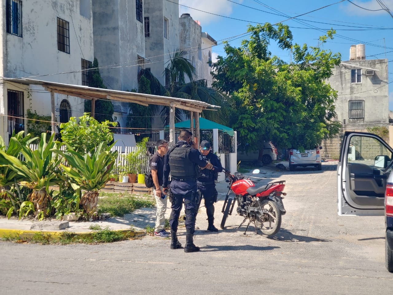 Cancún.- Dos hombres fueron detenidos luego que presuntamente intentaran ejecutar a una persona, pero acabaran derrapando en su moto, en el fraccionamiento Tabachines de esta ciudad.