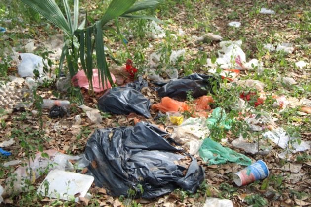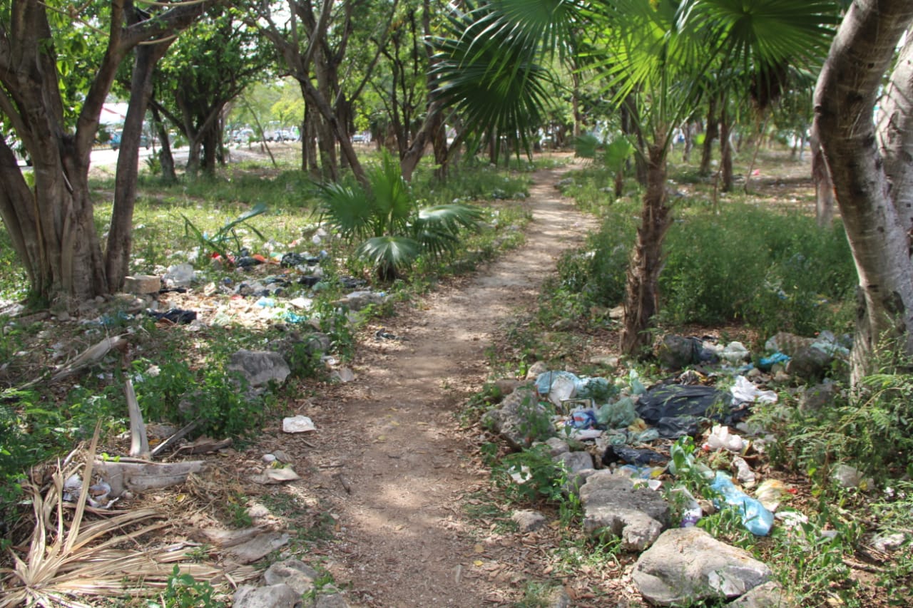 Son decenas de personas que tienen ese lugar como punto de encuentro para tomar los transportes que brindan servicio a los hoteles en la Zona Hotelera y Riviera Maya, los que no hacen conciencia y depositan su basura en dicha área verde.