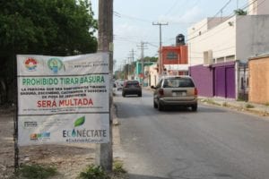 Junto a “La Cuchilla”, hay un letrero colocado por el Ayuntamiento de Benito Juárez, donde se advierte que al que sea sorprendido tirando basura en esa área serán multadas.