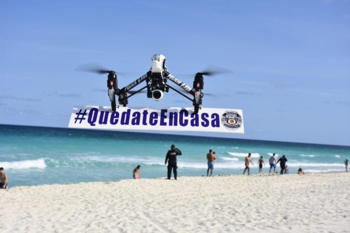 Asimismo, se activó el escuadrón “Azor de Drones” de la Policía de Quintana Roo, en coordinación con el Centro de Comando, Control, Comunicación y Cómputo (C-2 y C-4), para la visualización de imágenes transmitidas en diferentes regiones, con la finalidad de coadyuvar con los operativos de prevención ante la pandemia mundial.