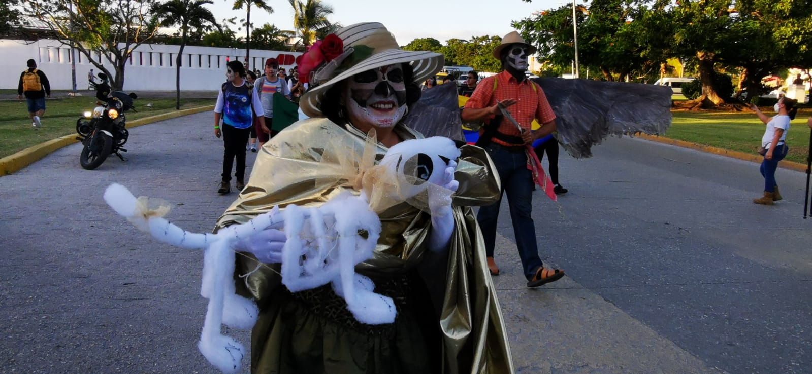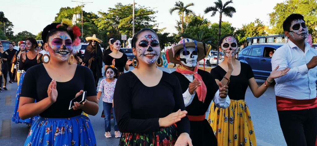El contingente partió desde la Avenida Tulum, a un costado de la estación central de Bomberos y del Teatro 8 de Octubre, hasta el andador Tulipanes hacia el Parque de las Palapas, con personas de todas edades caracterizadas como el personaje creado en 1912 por el ilustrador mexicano José Guadalupe Posada y que es representativo de México en esta temporada.
