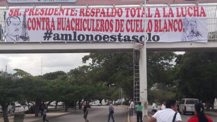 Cancún.- Para mostrar su apoyo por la lucha emprendida por el gobierno federal contra el “Huachicoleo”, ciudadanos se organizaron la mañana de hoy jueves para colocar cuatro mantas en diferentes puntos de la ciudad.