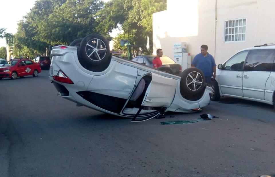 Cancún.- Un accidente de tránsito se registró la mañana de hoy sábado, sin que haya reporte de persona lesionada, pues a pesar de ser aparatoso, los involucrados resultaron ilesos.