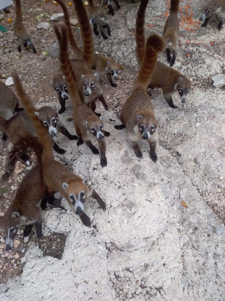 Hace tres semanas habían más de 120 coatíes, y actualmente, tras la matanza indiscriminada, sólo quedan poco más de 20 animalitos, los cuales son alimentados con desperdicio de comida, frutas y verduras, señaló la activista.