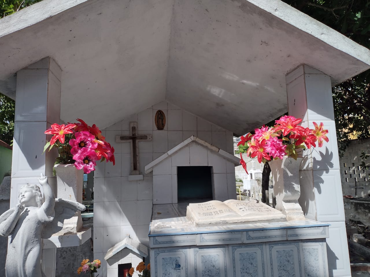 Una esquina de la lápida, comprobó, estaba rota, pero además los asentaderos para las flores fueron hurtados y colocados en otra tumba, próxima. Hasta la cruz fue arrancada o se cayo.