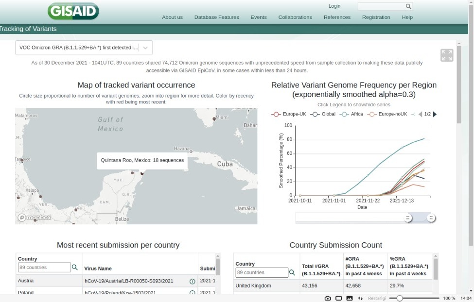 Cancún.- Quintana Roo tiene oficialmente 18 contagios de Covid-19 con la variante Ómicron, de acuerdo a información ingresada por el Instituto Nacional de Medicina Genómica. La entidad ocupa el tercer lugar en cuanto a número de casos, detrás de Ciudad de México (159) y Estado de México (35).