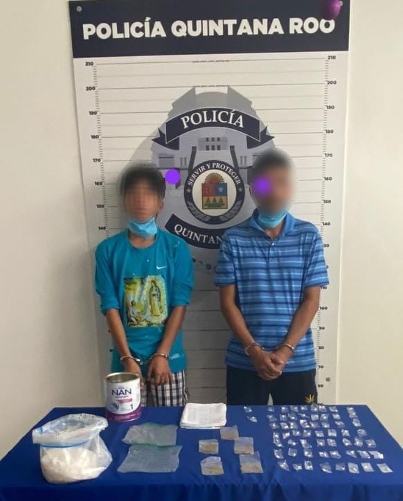 Alejandro H. B. de 20 años de edad, originario de Cancún, y Elvia G. A., de 40 años de edad, originario de Chiapas, ambos residentes de Ciudad Natura, fuero entregados a la Fiscalía General del Estado, por narcomenudeo y privación ilegal de la libertad.