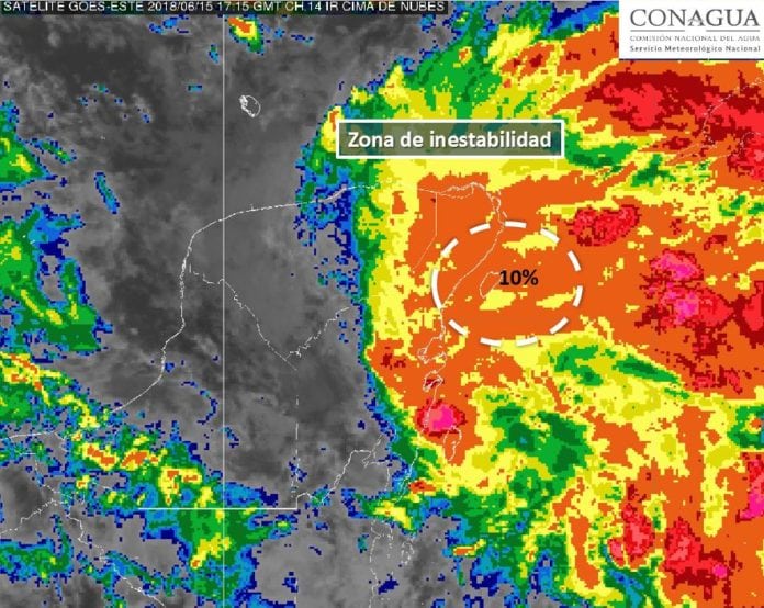 La zona de inestabilidad tiene un 10% de probabilidad de evolucionar a una depresión o tormenta tropical en las próximas 48 horas, según los pronósticos.