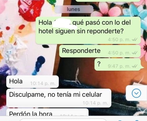 “Esperé una hora para que el hotel sacara al huésped e hiciera algo o mínimo sacarlo del hotel, con lágrimas en los ojos y en la mirada pedía a gritos ayuda , me puse nerviosa pero nadie me brindó apoyo.