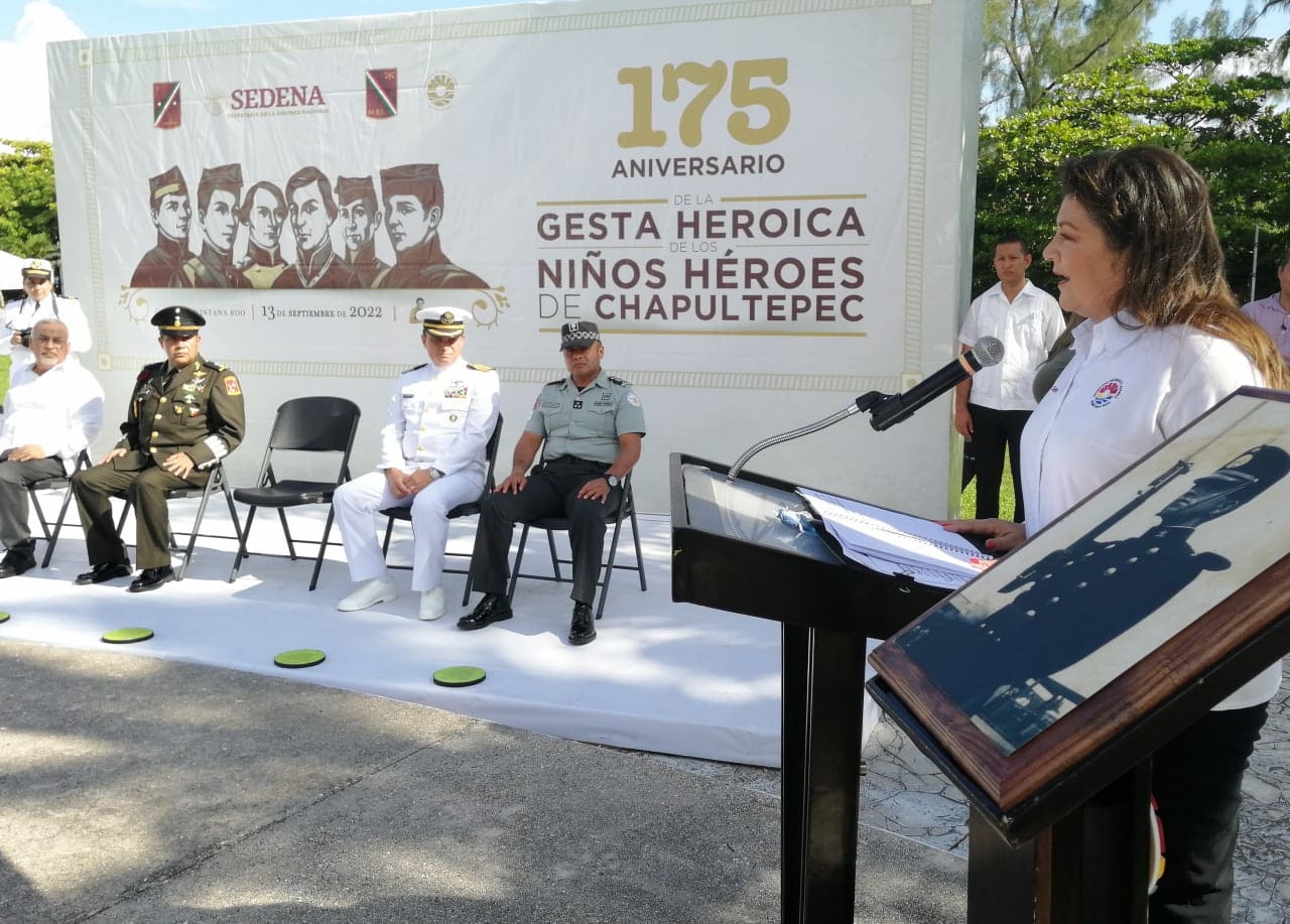 En el evento realizado a los pies del monumento del mismo nombre en el kilómetro 5.5 de la zona hotelera, la autoridad municipal hizo una remembranza de la participación heroica de alrededor de 50 cadetes del Heroico Colegio Militar de entre 12 y 19 años, en la Batalla de Chapultepec el 13 de septiembre de 1847, en la cual se destacaron cinco estudiantes y uno recién graduado, por enfrentar al ejército de Estados Unidos.