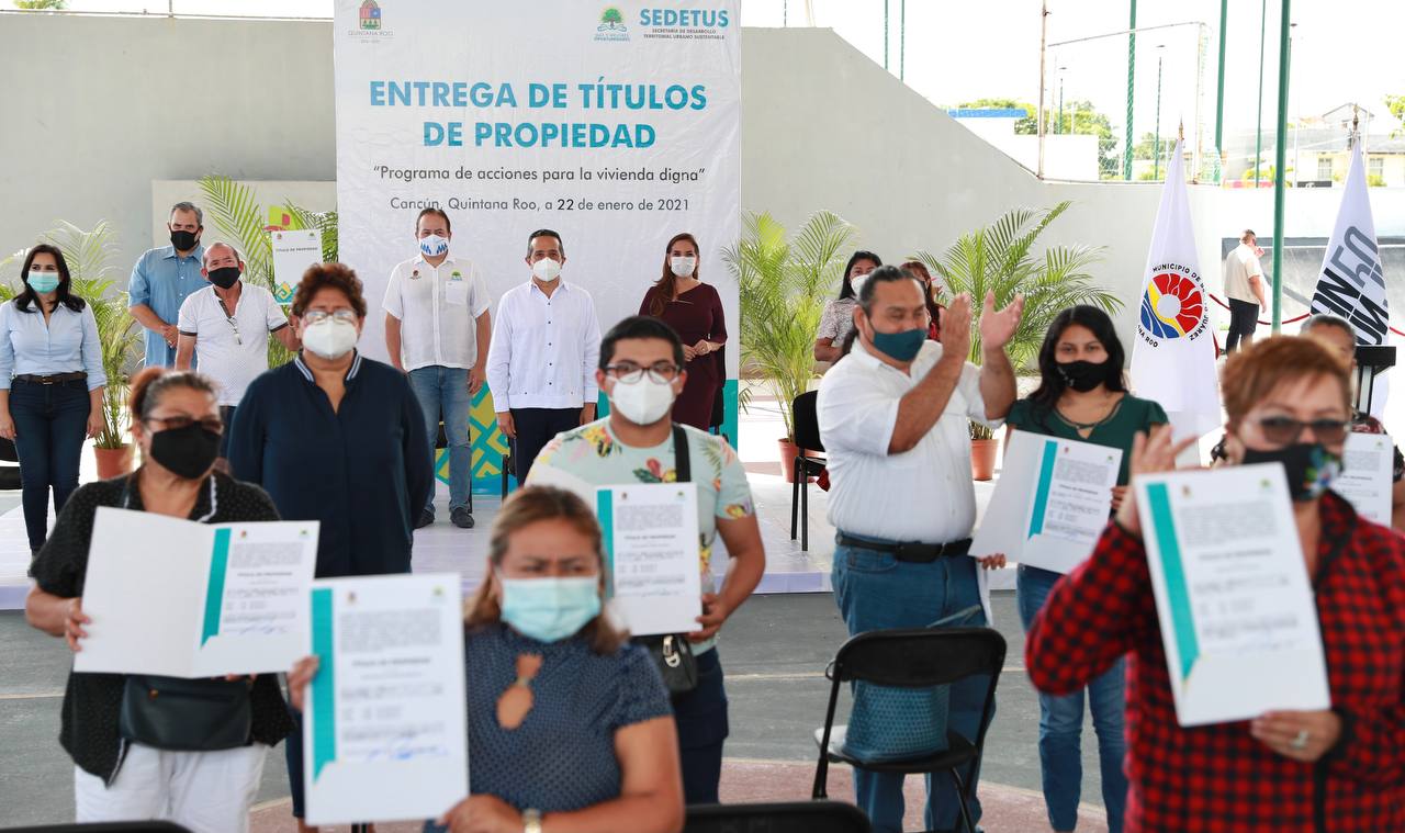 “Uno de los grandes ejes que tenemos que instrumentar para combatir esa desigualdad es la inclusión y hoy lo demostramos aquí entregando estos títulos de propiedad, que marcan seguridad a nuestro patrimonio, a la vida de cada una y uno de ustedes”, expresó el gobernador de Quintana Roo.
