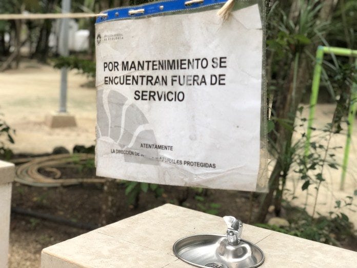 Un par de meses antes de concluir el anterior gobierno municipal, en el año 2018, los bebederos y al menos tres sanitarios fueron entregados sin funcionar. A un año, la misma situación persiste y se observan avisos de áreas “en mantenimiento”.