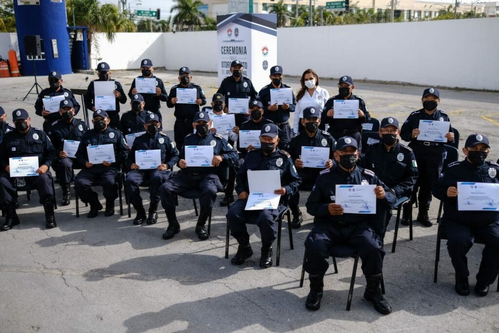 Cancún, Quintana Roo.- El esfuerzo, empeño y compromiso de 25 elementos que concluyen de manera honrada y valerosa sus años de servicio en la Secretaría Municipal de Seguridad Pública y Tránsito fueron reconocidos por el Ayuntamiento de Benito Juárez que encabeza la Presidenta Municipal, Mara Lezama, al realizar la entrega del “Apoyo Adicional al Retiro de los Policías del Municipio de Benito Juárez”.