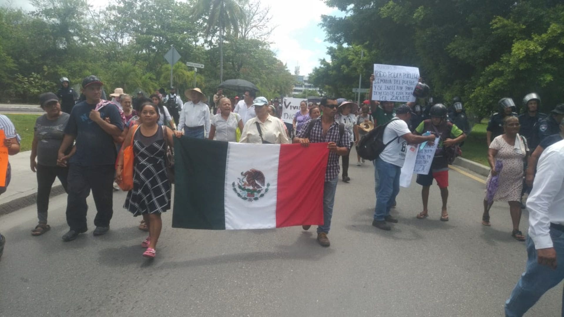 Fueron cerca de 50 personas las que se reunieron este día en el kilómetro cero poco antes de la 1:00 pm. Comenzaron con un mitin en las áreas verdes de esta zona y mientras analizaban si iban a marchar sobre el bulevar Kukulcán.