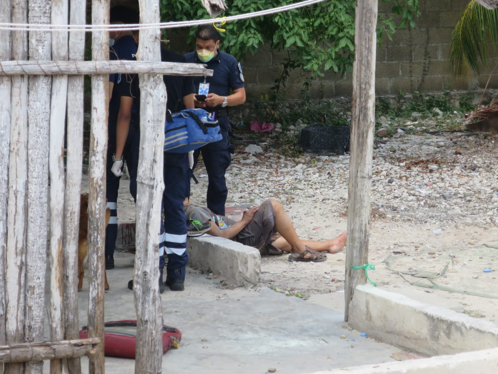 Estas personas llamaron al 911, por lo que arribó al lugar una ambulancia, cuyos paramédicos vendaron al lesionado, quien no requería ser trasladado a un hospital, al ser sus heridas leves.
