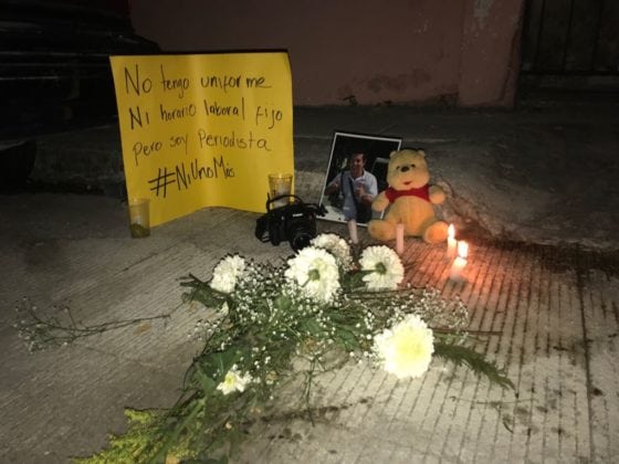 “No tengo uniforme ni horario laboral fijo pero soy periodista”, se veía en un altar urbano junto a la foto del que pasó a ser el tercer periodista ejecutado este año en Quintana Roo y un muñeco de Winnie Pooh.